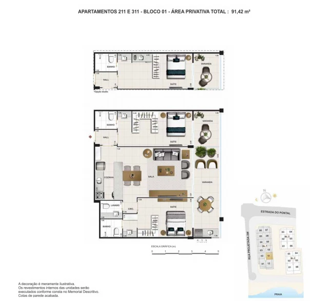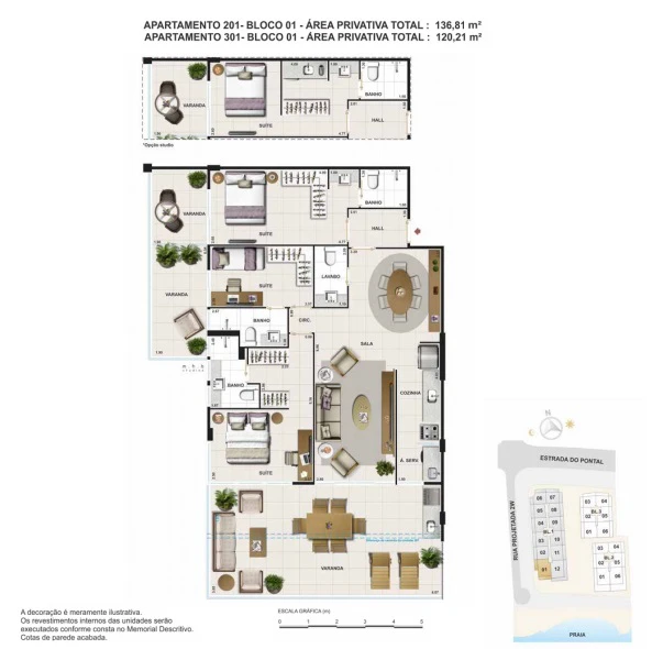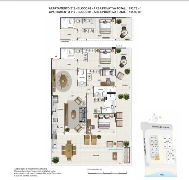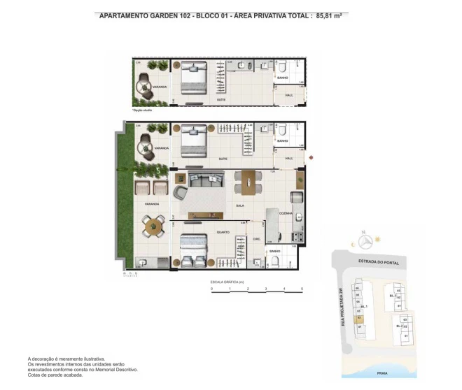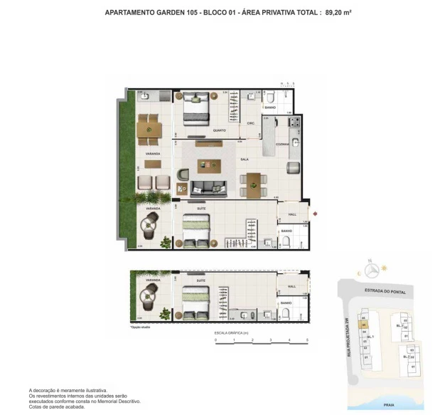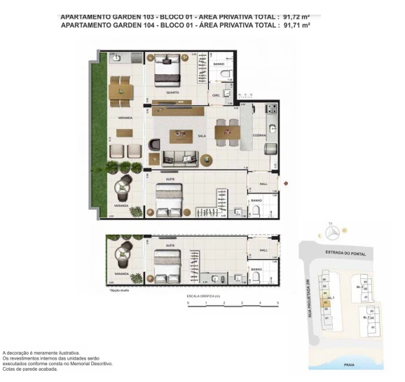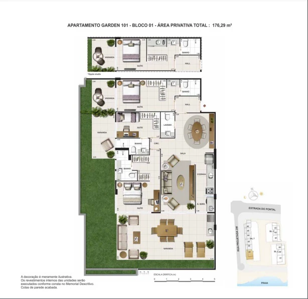 Apartamentos Garden 3 Suítes com 164m² até 195m² / Apartamentos Garden 2 Suítes com 85m² até 135m².